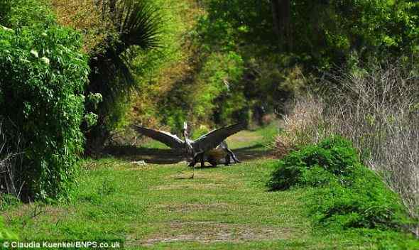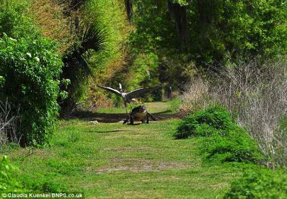 放下我的孩子!在一直苍鹭偷走小鳄鱼后,鳄鱼妈妈紧追不舍