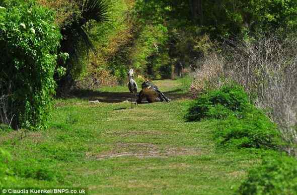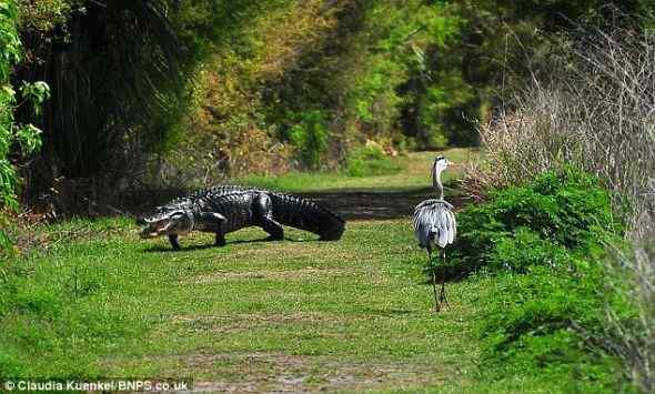 弄巧成拙:这只苍鹭以为自己捡了便宜,但不幸很快就被鳄鱼妈妈发现
