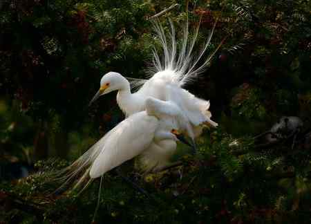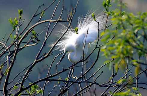 大白鹭是在树上集群筑巢,一棵高大粗壮的槐树上常常是好几家大白鹭比邻而居。大白鹭是...