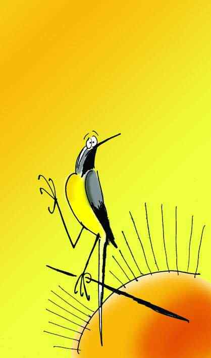 “若看到小鸟从头顶飞过使你愉快,你就会希望昆虫不要消失。灰鹡鸰站在电线上,通常并...