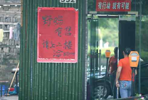 野鸡有售”4个大字,门楣上则是“有行动,就有可能”,两者倒是“相映成趣”。野鸡的...