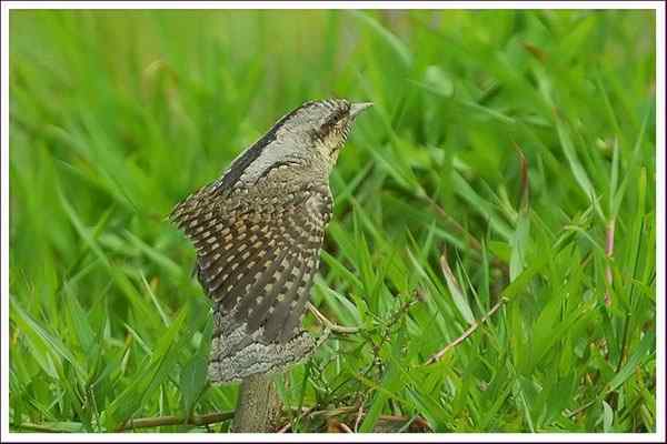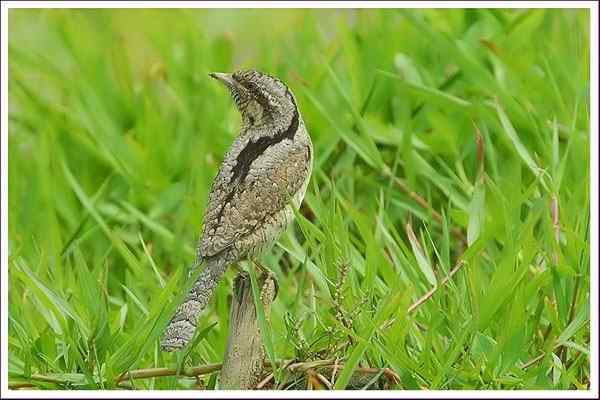 扭颈鸟,跟啄木鸟同属一科。它身体长约二十厘米,长着一张尖尖的嘴,外形很像啄木鸟。不过它并不在树木上啄虫,而是常常在地面啄食,因此又被叫做“地啄木”。