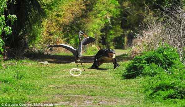 [组图]凶猛苍鹭吞吃小鸭 母鸭勇敢救子
