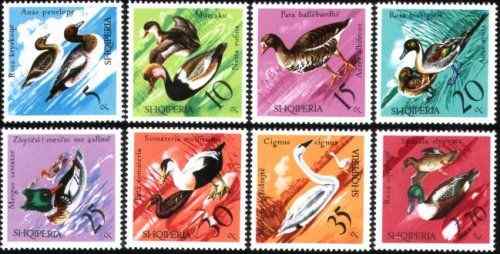 邮票名称:阿尔巴尼亚水鸟发行时间:1975年6月15日全套8枚,面值:5q10q...