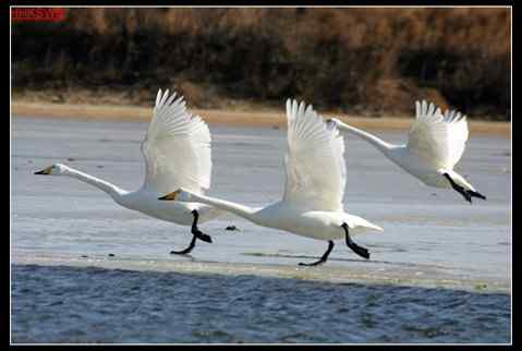 拍摄于黄河故道,天鹅展翅飞翔。...