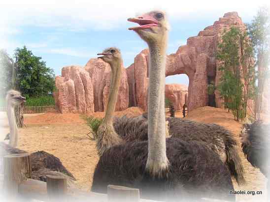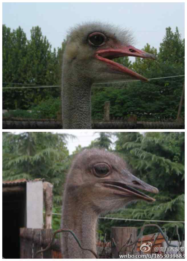 @南川木菠萝:鸵鸟夫妇~上公下母~大多数鸟类是雄性比较鲜艳,鸵鸟也是鸟,公鸵鸟比...